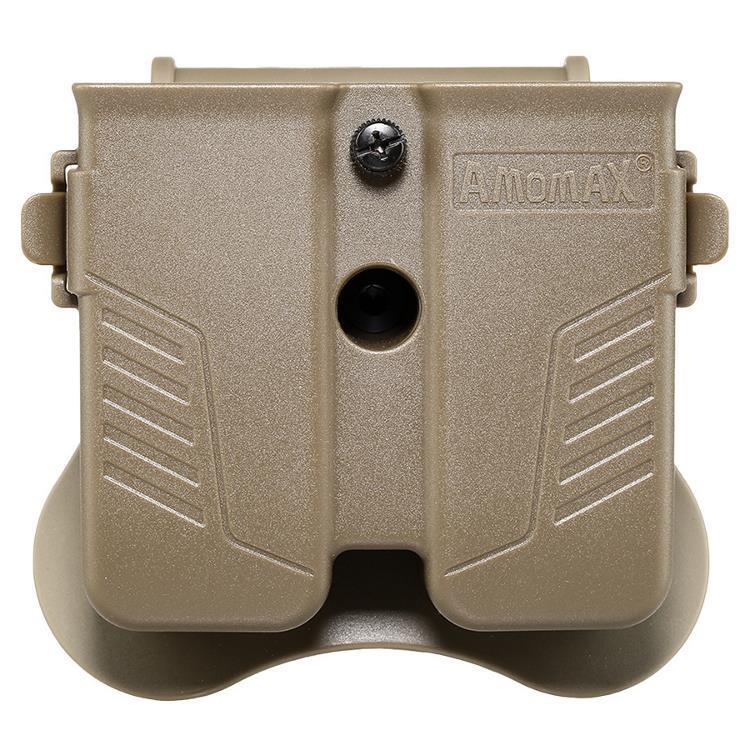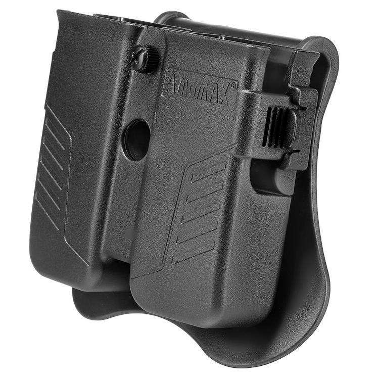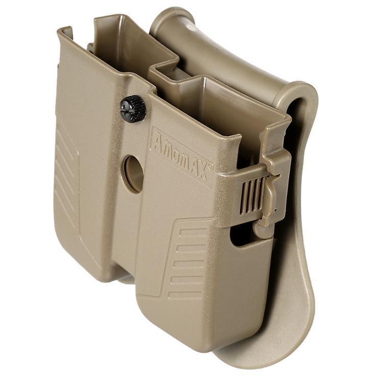 La fondina del caricatore viene fornita con un adattatore per paddle. Tuttavia, può essere montato sia su Amomax Molle che su adattatori per cintura. L'angolo di trazione può essere regolato a 360 gradi