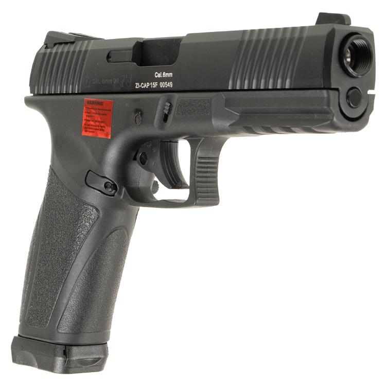 La pistola è prodotta in proporzioni autentiche e nella nota qualità di produzione APS. L'impugnatura o il telaio della pistola è stato prodotto da APS in un design sottile in plastica composita polimerica, il che significa che la pistola può essere tenuta saldamente da mani di diverse dimensioni. Allo stesso tempo, ciò ha permesso di ridurre il peso. Le superfici leggermente ruvide e strutturate nell'area dell'impugnatura di questa pistola hanno un effetto antiscivolo. Ha un mirino che si illumina al buio, quindi non avrai problemi quando scatti in un luogo buio. In combinazione con la canna interna integrata da 6,03 mm, lo Z1 CAP raggiunge un'ottima rosata e con 0,20 BB una potenza fino a 1,0 joule.