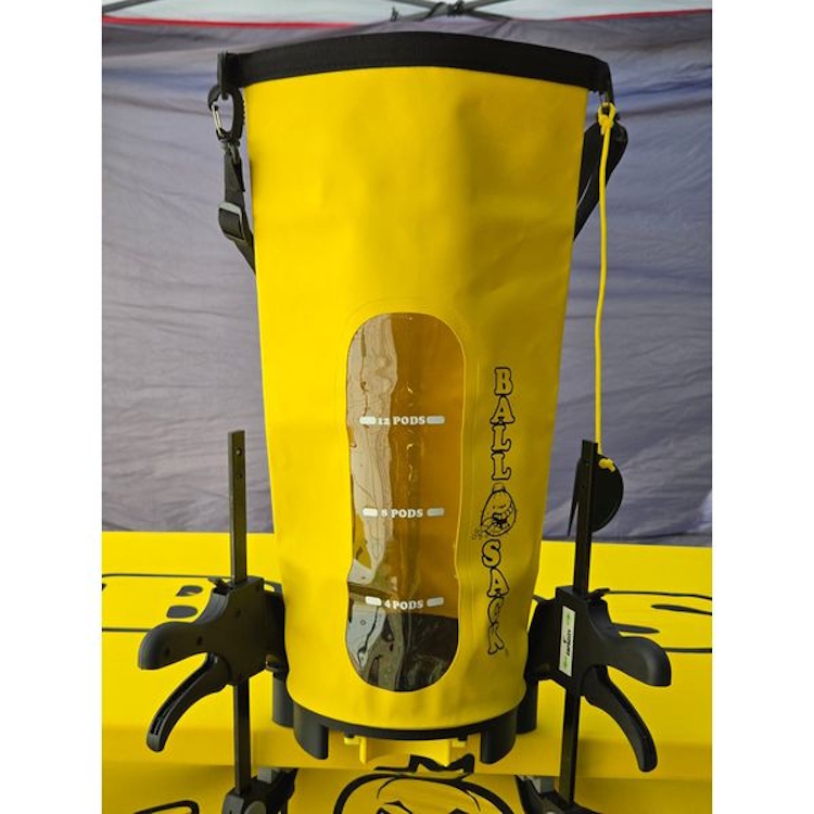 BALLSACK è l'innovativo sistema di riempimento per paintball pensato per giocatori, squadre e organizzatori che apprezzano velocità, efficienza e protezione. Grazie alla sua struttura ben progettata, consente un riempimento pulito e rapido del serbatoio, sia in allenamento che in gara. Che sia appeso, fissato a un tavolo o utilizzato in modo indipendente, BALLSACK si adatta perfettamente alla routine quotidiana sul campo da gioco. Il materiale in PVC 500D resistente alle intemperie protegge in modo affidabile le palline di vernice da umidità, calore e raggi UV. La tracolla regolabile rende il trasporto facile e comodo. Particolarmente pratici sono il vassoio di scarico integrato con chiusura ammortizzata, la finestra di visualizzazione dell'indicatore di livello del colore e il cursore scorrevole del serbatoio con meccanismo a molla, perfetto anche per le vernici delicate dei tornei.