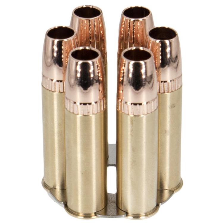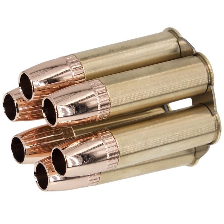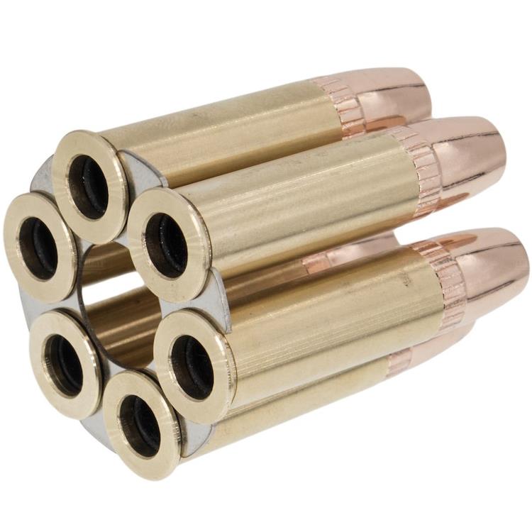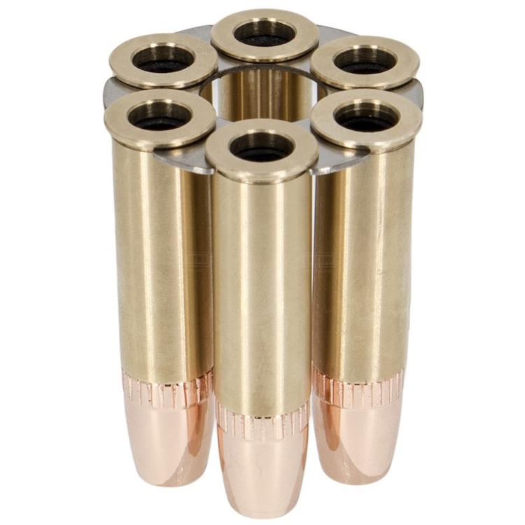 Ricaricare il tuo revolver Dan Wesson 715 è un gioco da ragazzi grazie al robusto alloggiamento in rame e al finto bossolo in acciaio.