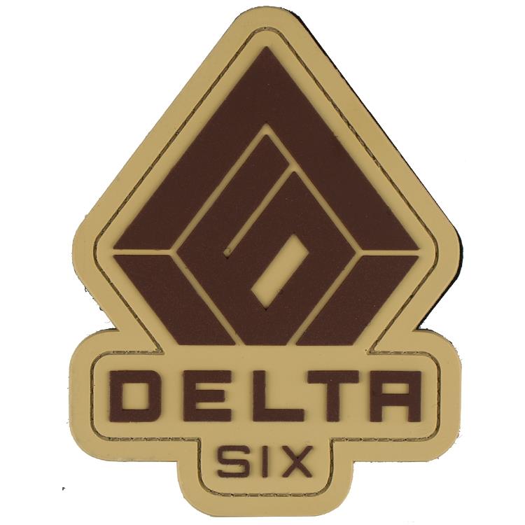Toppa con logo del marchio Delta Six. Toppa in gomma PVC di alta qualità con retro in velcro per il fissaggio ad attrezzature, borse o abiti.