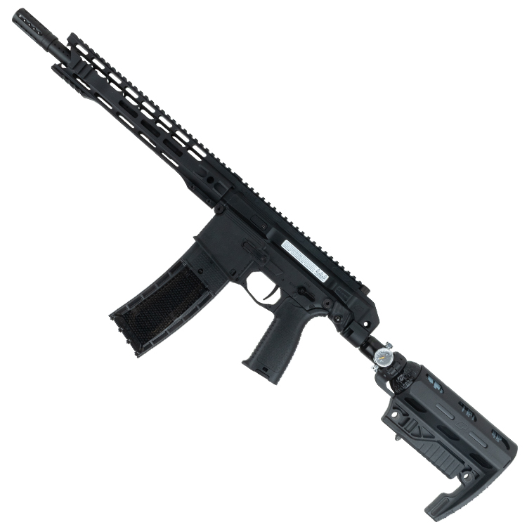 Per un'ulteriore personalizzazione, è disponibile il calcio regolabile opzionale Eclipse EMC. Con sei posizioni regolabili, il calcio può essere adattato a diverse distanze di combattimento e può essere collegato direttamente a un serbatoio di aria compressa da 13 metri cubi.