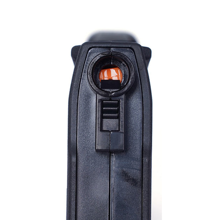 Indicatore arancione brillante di pieno carico: quando il caricatore è completamente carico, un indicatore arancione appare nella parte inferiore della finestra trasparente del proiettile. Questa è una caratteristica progettuale unica dell'EPM, in quanto consente all'utente finale di prendere qualsiasi caricatore EPM e sapere immediatamente se è completamente carico e pronto al fuoco. Serve anche come indicatore visivo per quando interrompere il caricamento del caricatore.