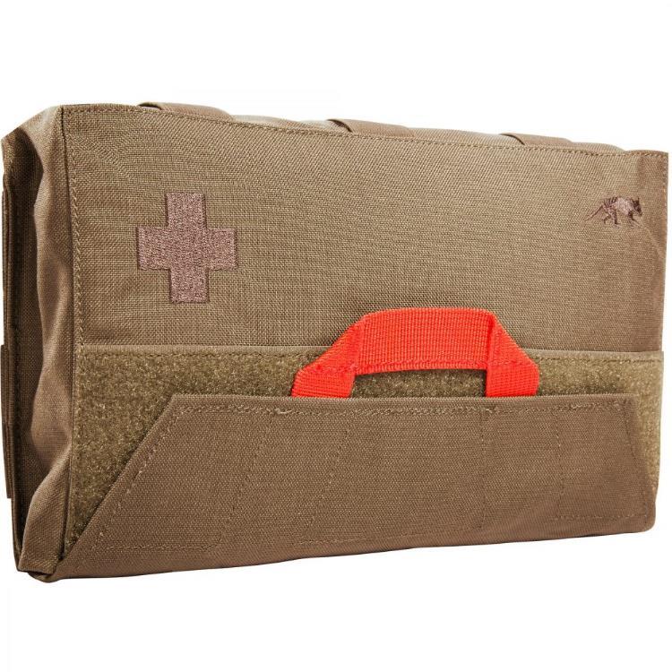 Cassetta di pronto soccorso con sistema di accesso rapido. Il pannello con passanti attrezzati individualmente può essere estratto con una maniglia.