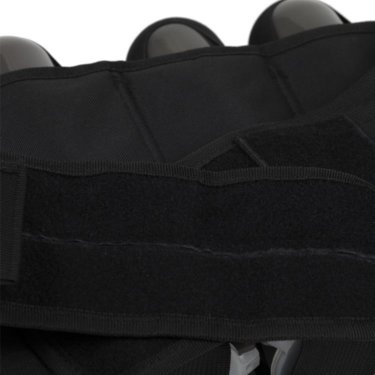 I passanti per pod sono fissati con una chiusura in velcro per evitare che i vasi cadano accidentalmente. Gli elastici incrociati si trovano nella parte superiore delle tasche delle pentole, che assicurano che lo speedloader possa essere estratto più rapidamente. A causa della disposizione incrociata, non possono più sfilarsi dal pod e lavorare in sicurezza in ogni situazione di gioco.